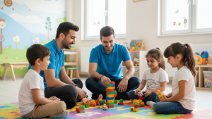 Akran öğrenmesini ve sosyal becerileri güçlendiren mini grup çalışmalarımız minimum 2 – maksimum 4 çocuk ile gerçekleştirilir. Her çocukla birebir ilgilenilirken aynı zamanda sosyal etkileşim, iletişim ve iş birliği gelişir. Birey oyunla hem eğlenir hemde paylaşmayı, iş birliği içinde hareket etmeyi öğrenir.